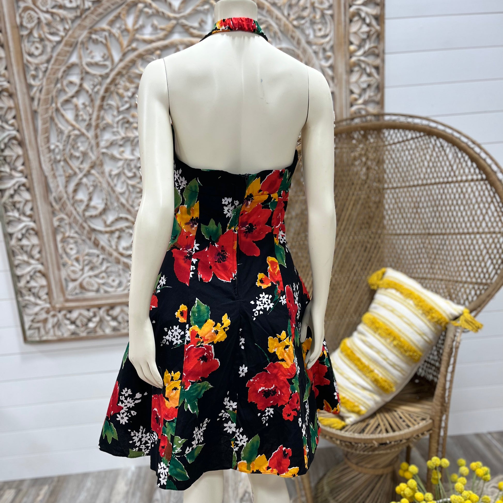 Vintage 80s does 50s Halter Floral Stand Out Mini Sun Dress