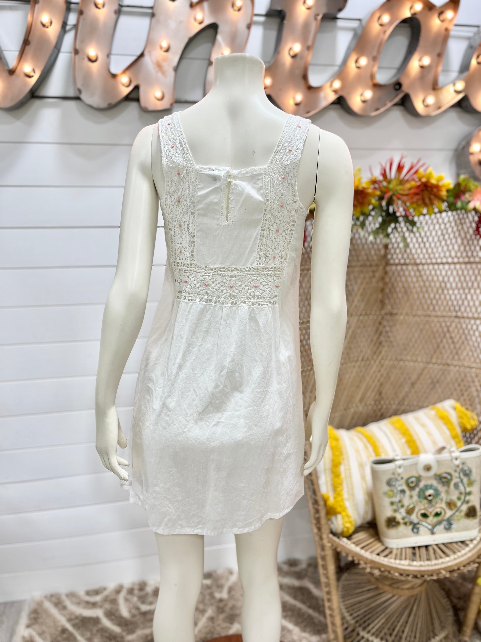 Vintage 80s Sheer Dainty Lace Rose Mini Dress S