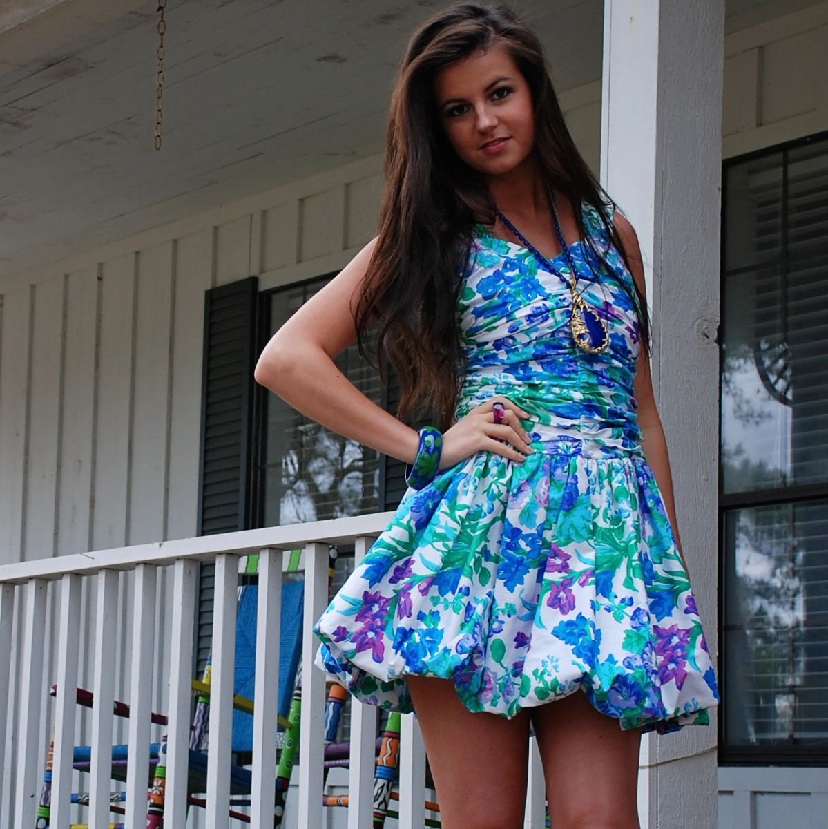 Vintage 80s Ruched Floral Bubble Hem Mini Dress