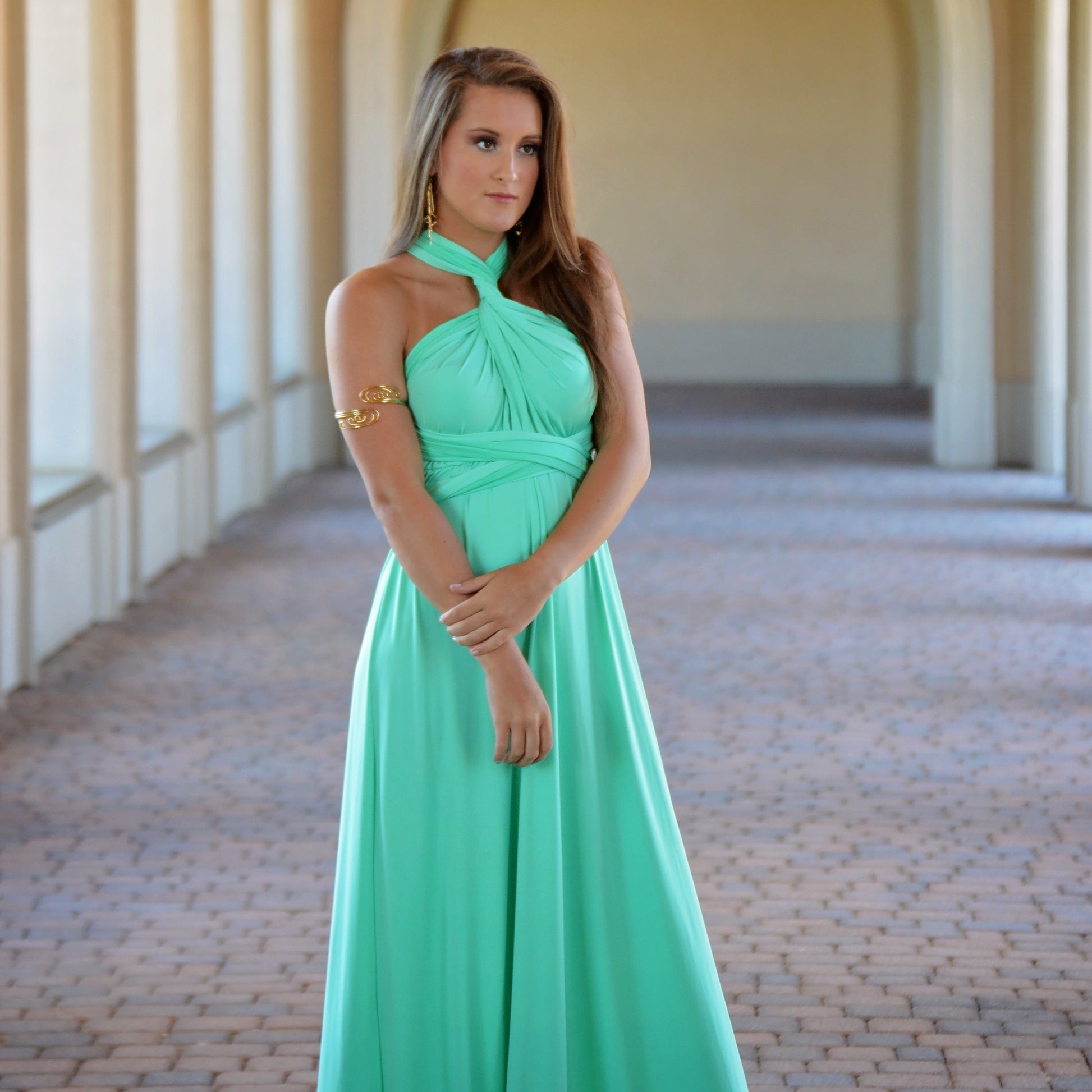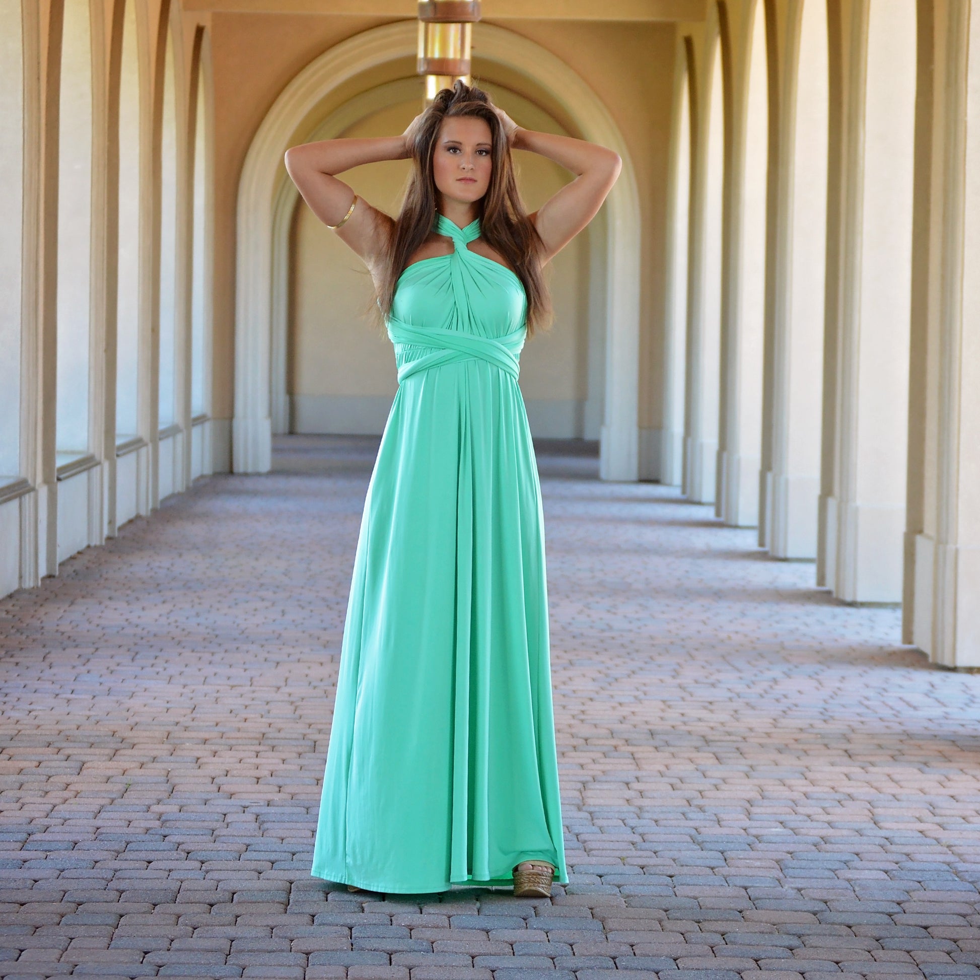 Vintage 90s Mint Green Convertible Halter Maxi Dress