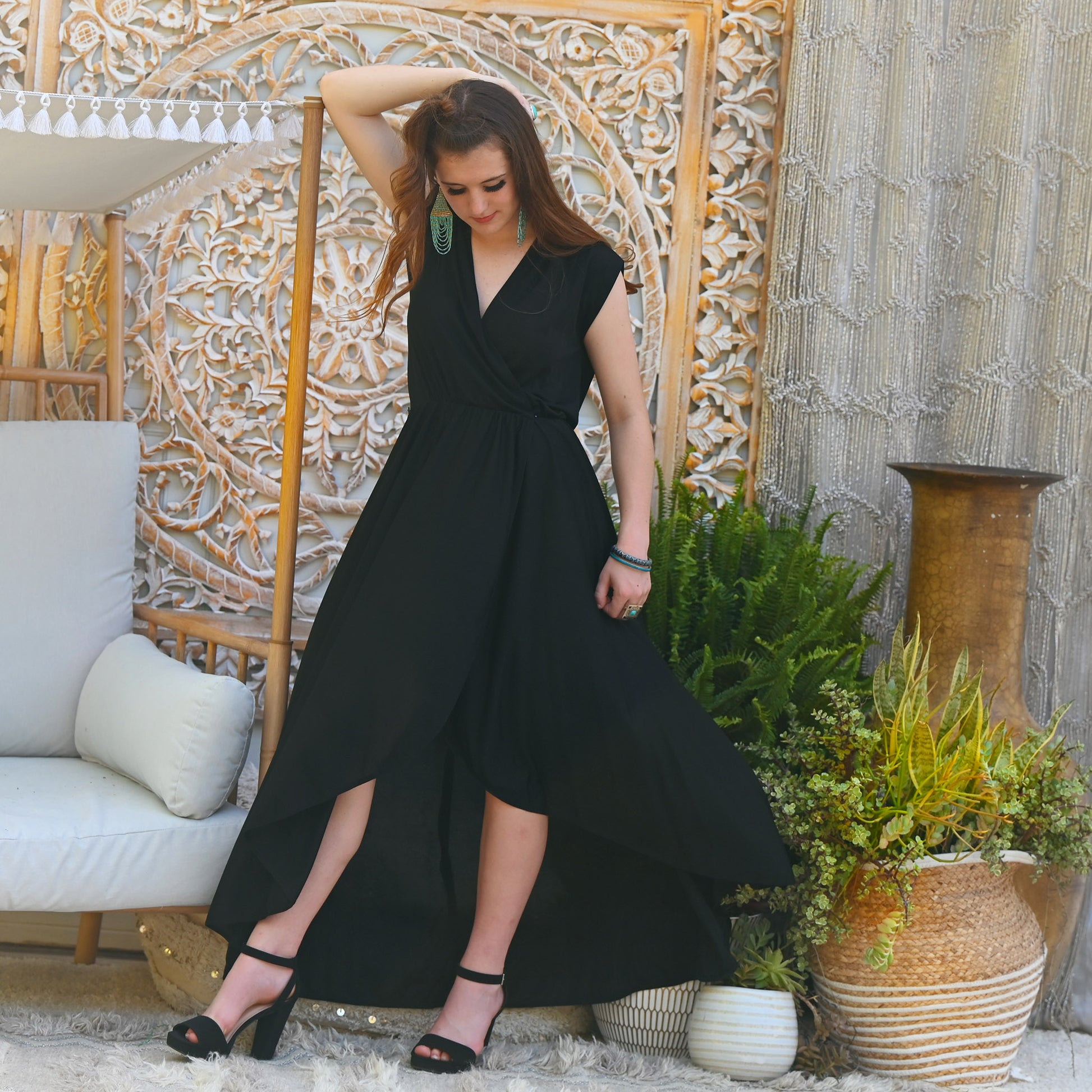 Vintage Adele Simpson 1960s Black High Low Wrap Dress S