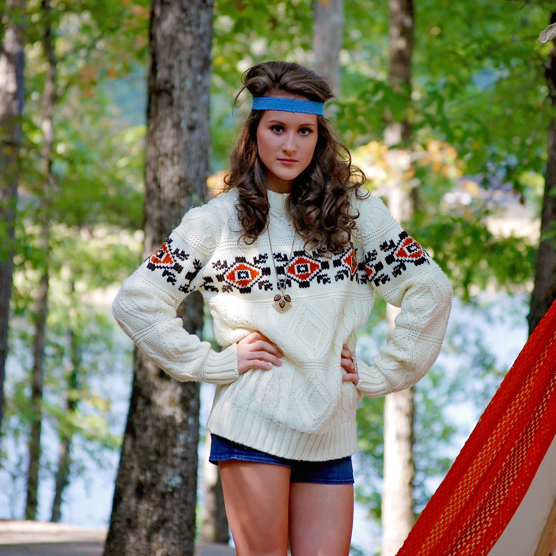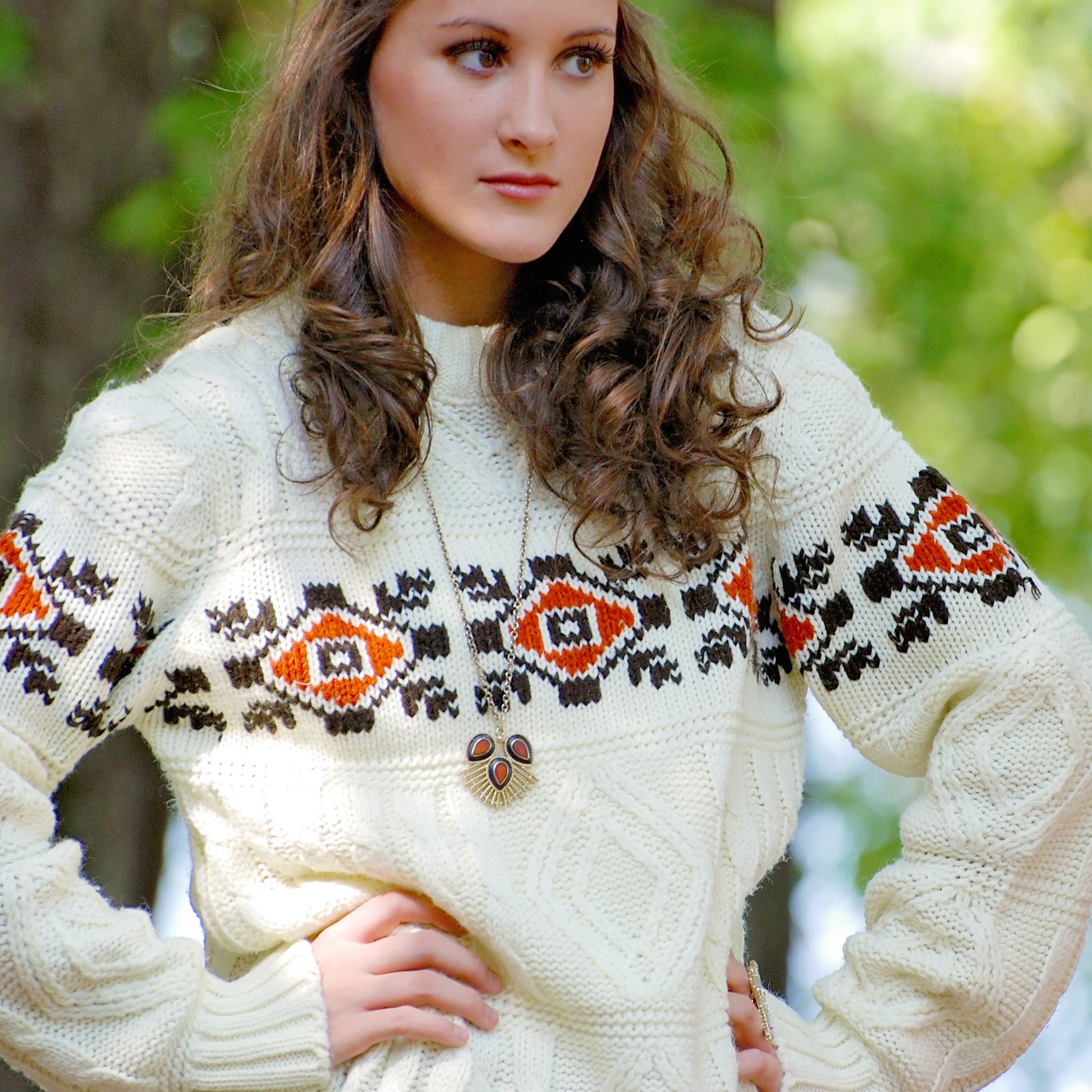 Vintage 70s Ethnic Tribal Knitted Pullover Sweater L